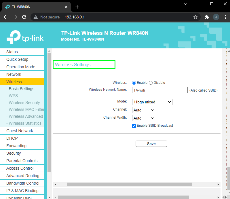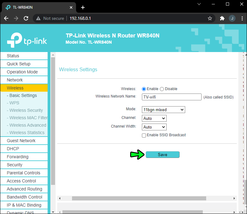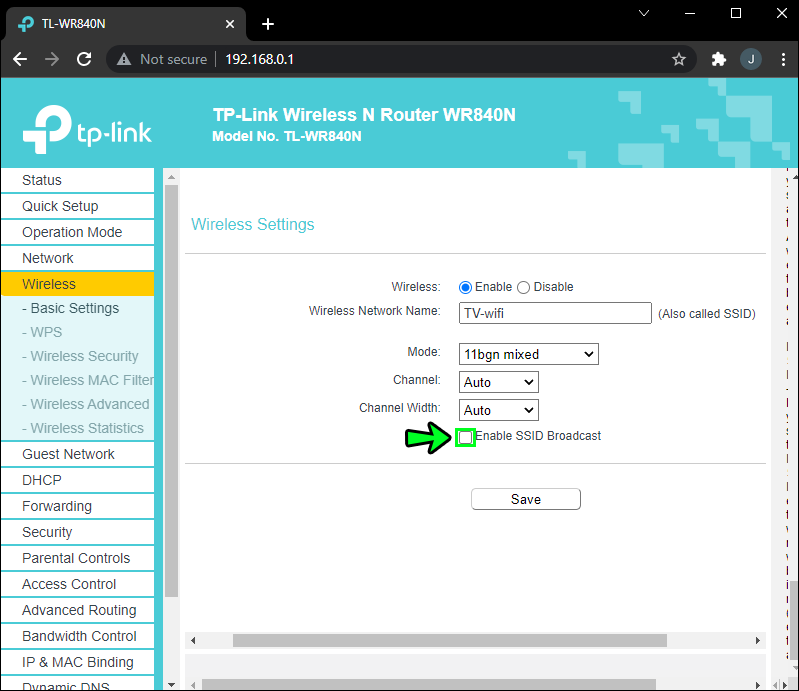 - Search for an option with a name like “Enable Hidden Wireless,” “Enable SSID Broadcast,” “Hide SSID,” etc.