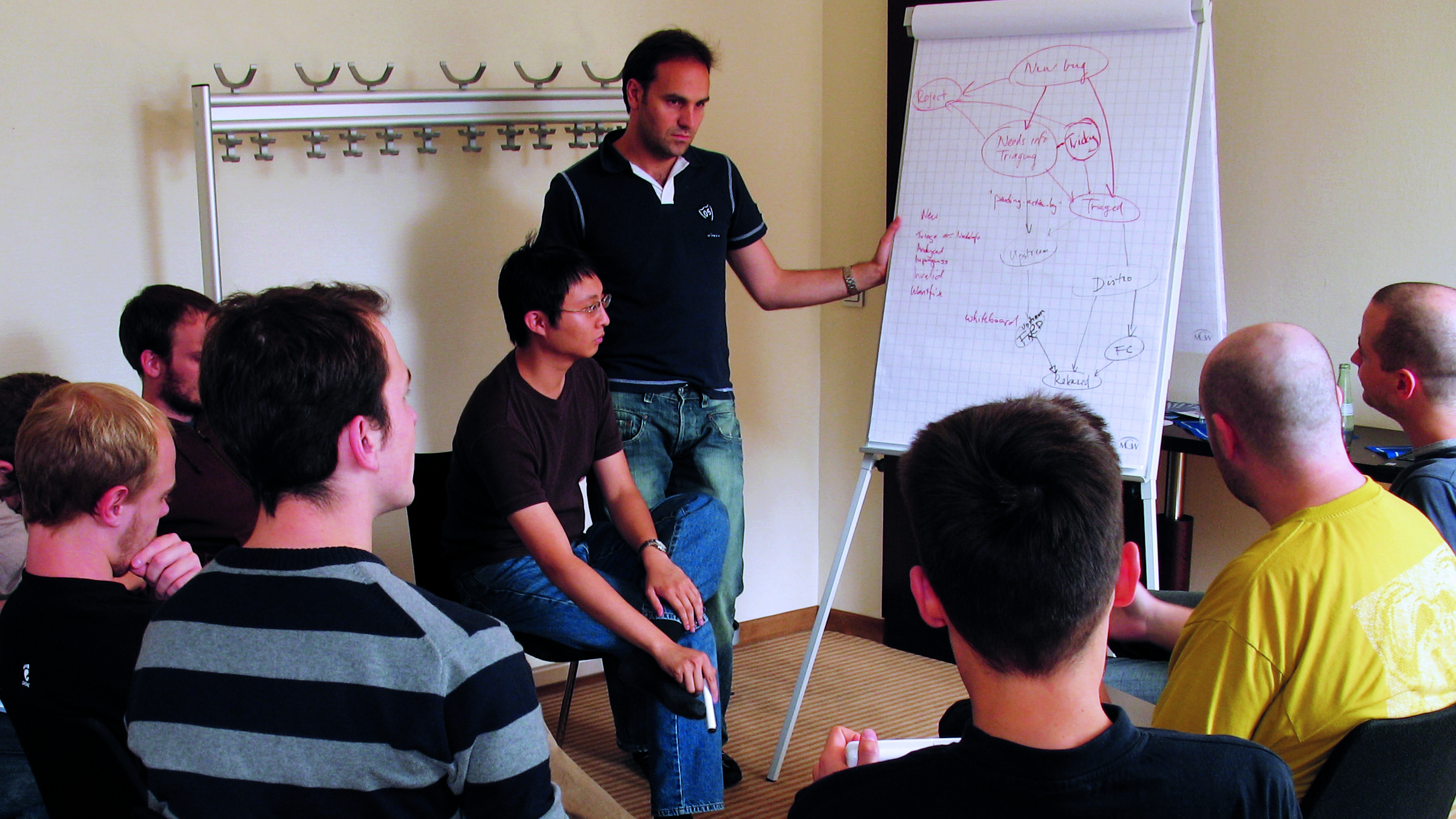 Founder Mark Shuttleworth leads an Ubuntu development meeting at Canonical