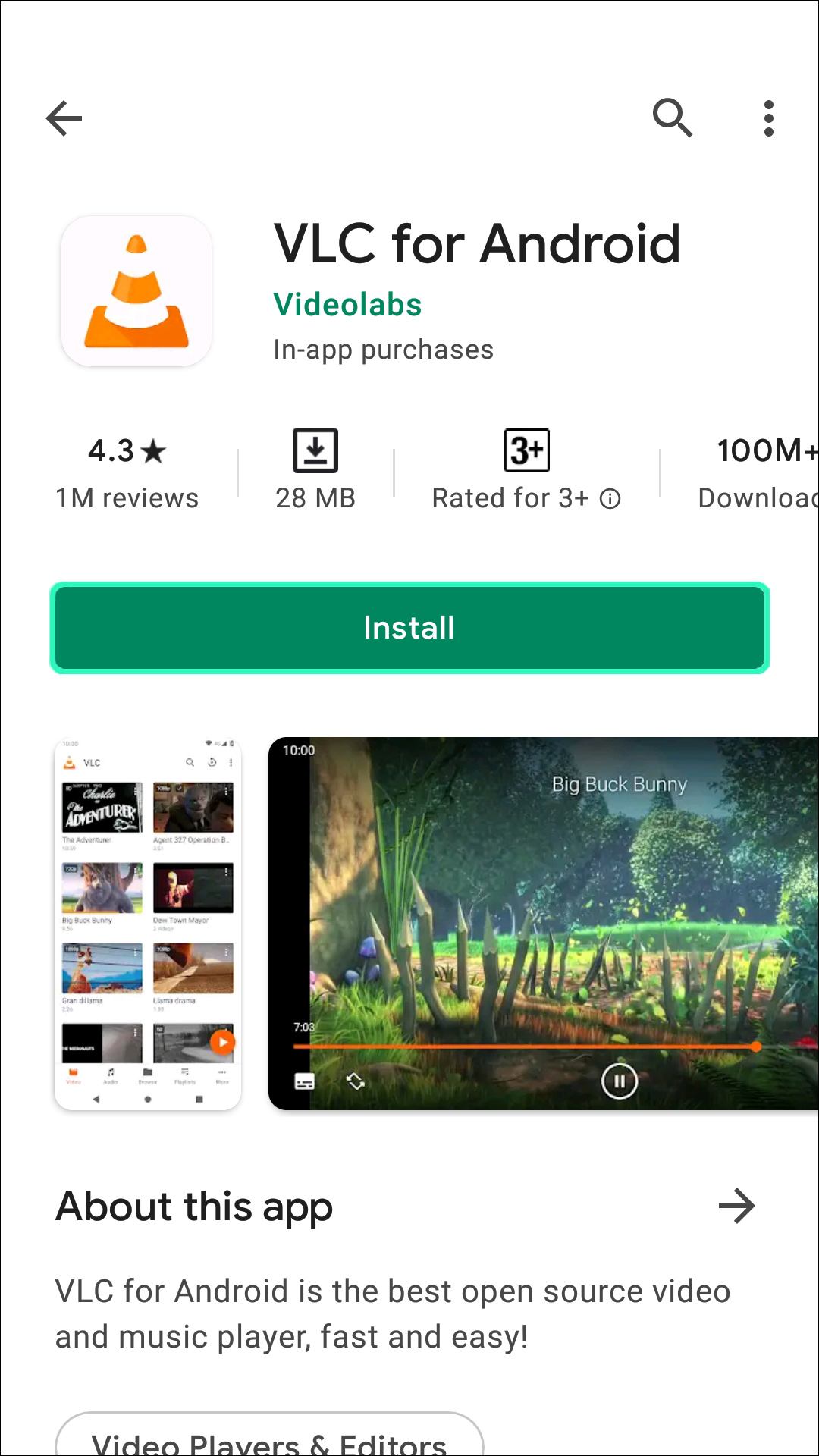 - Install VLC player on your device; this app is available from Google Play Store.