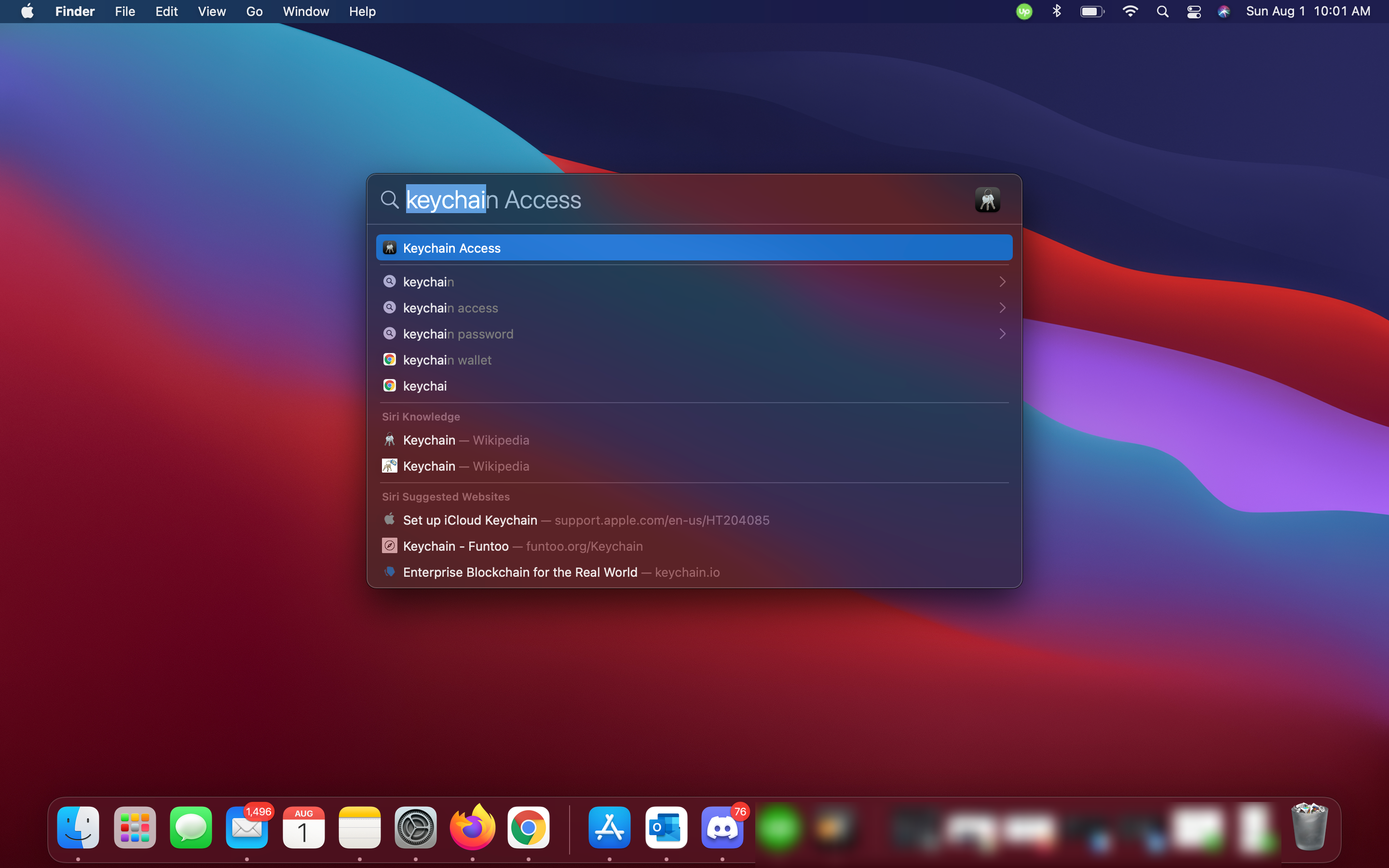 - Open your Mac’s Spotlight (Space bar + Command). Type in Keychain Access.