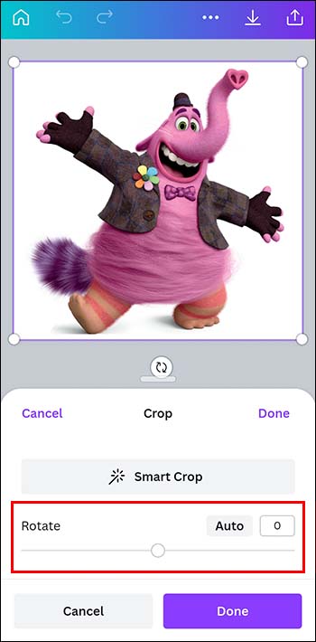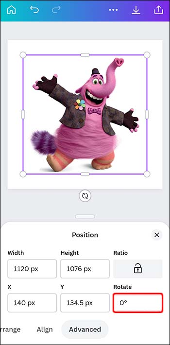 Unlike Canva’s computer clients, the apps won’t show you the exact angle to which you’re rotating your image. This can be unfortunate if you need to rotate your image to a specific angle or rotate multiple images to the same angle. But don’t worry; there’s a solution.