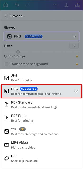 - Select your preferred format under “File type” (JPG, PNG, or SVG).