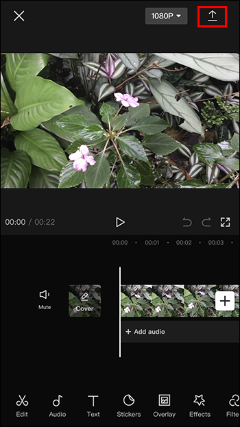- After editing your project, tap on the export button in the right-hand corner of the screen. The icon is an arrow pointing upwards.