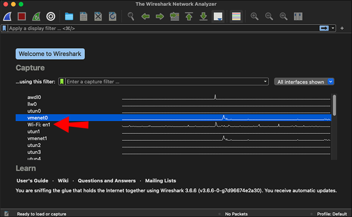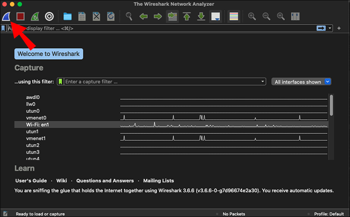 For now, let’s see how to start capturing all packets in Wireshark: