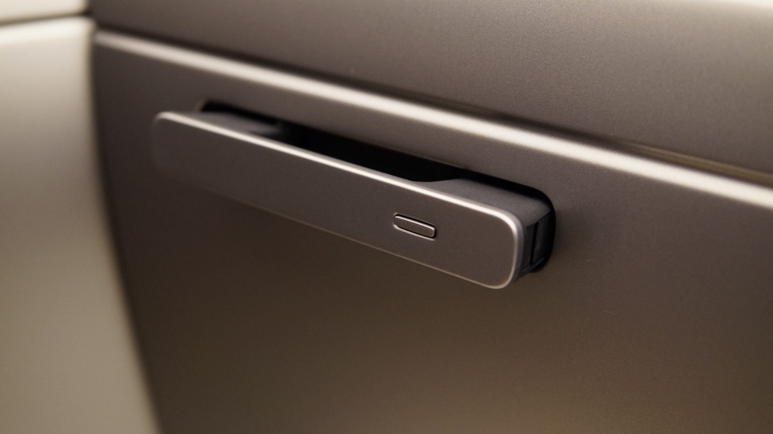The first screen looks to be the one you’ll use most, and interestingly it’s tiltable by up to 30 degrees – not something you tend to see. The upper screen should act as more of a traditional infotainment console, while the latter is primarily used for air conditioning and other vehicle handling settings.