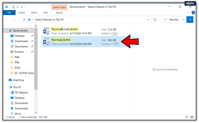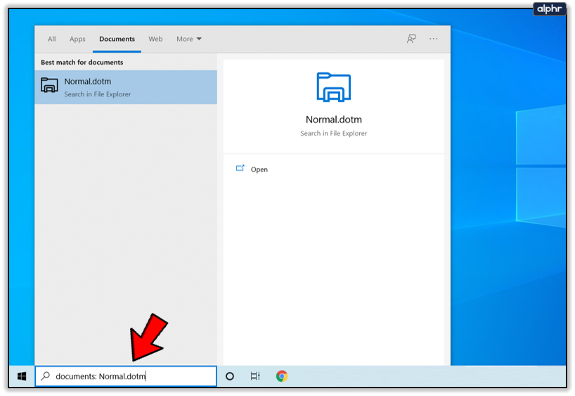 - Choose Documents at the top search category. Type Normal.dotm in the search box then hit enter.