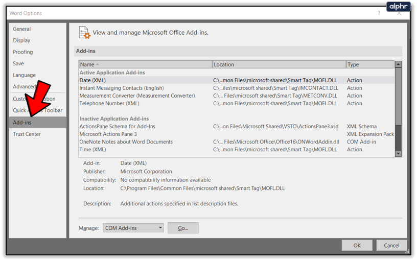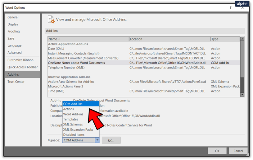 - From the Add-ins box, choose the one you want to disable. Check its type listed on the right.