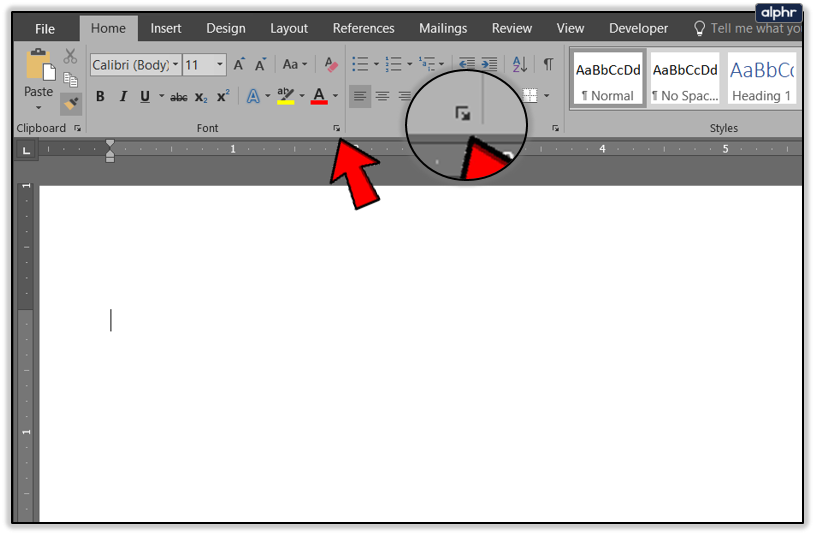 - Click on the Font Dialogue Box Launcher in the bottom right corner, below the font settings.
