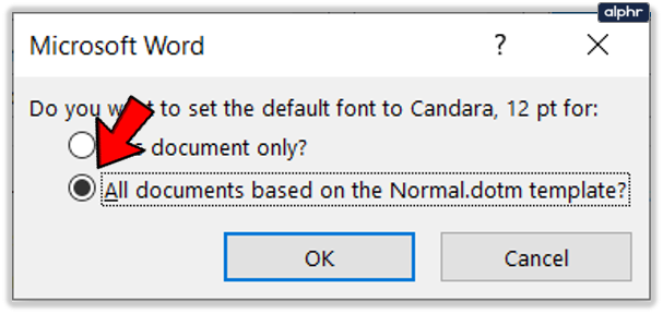 - In the pop-up window, choose the second option: All documents based on the Normal template.