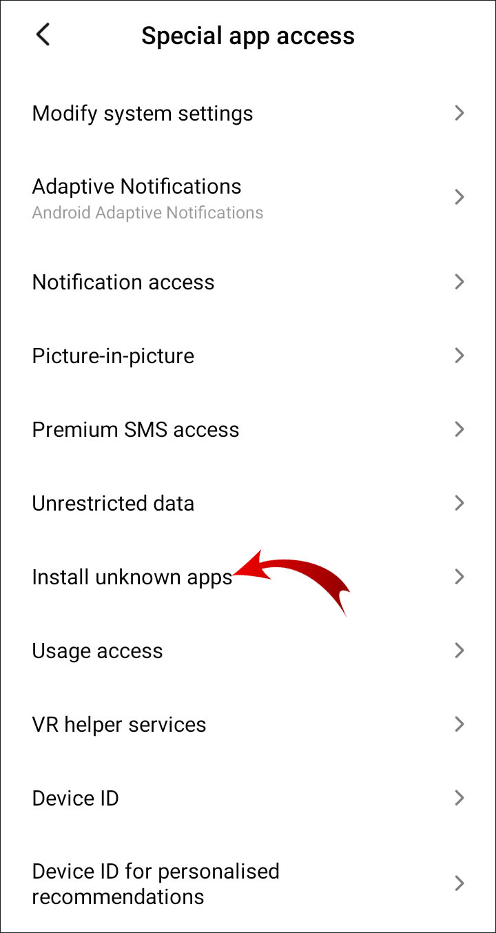 3. Scroll to the bottom of the screen and select Special App Access.