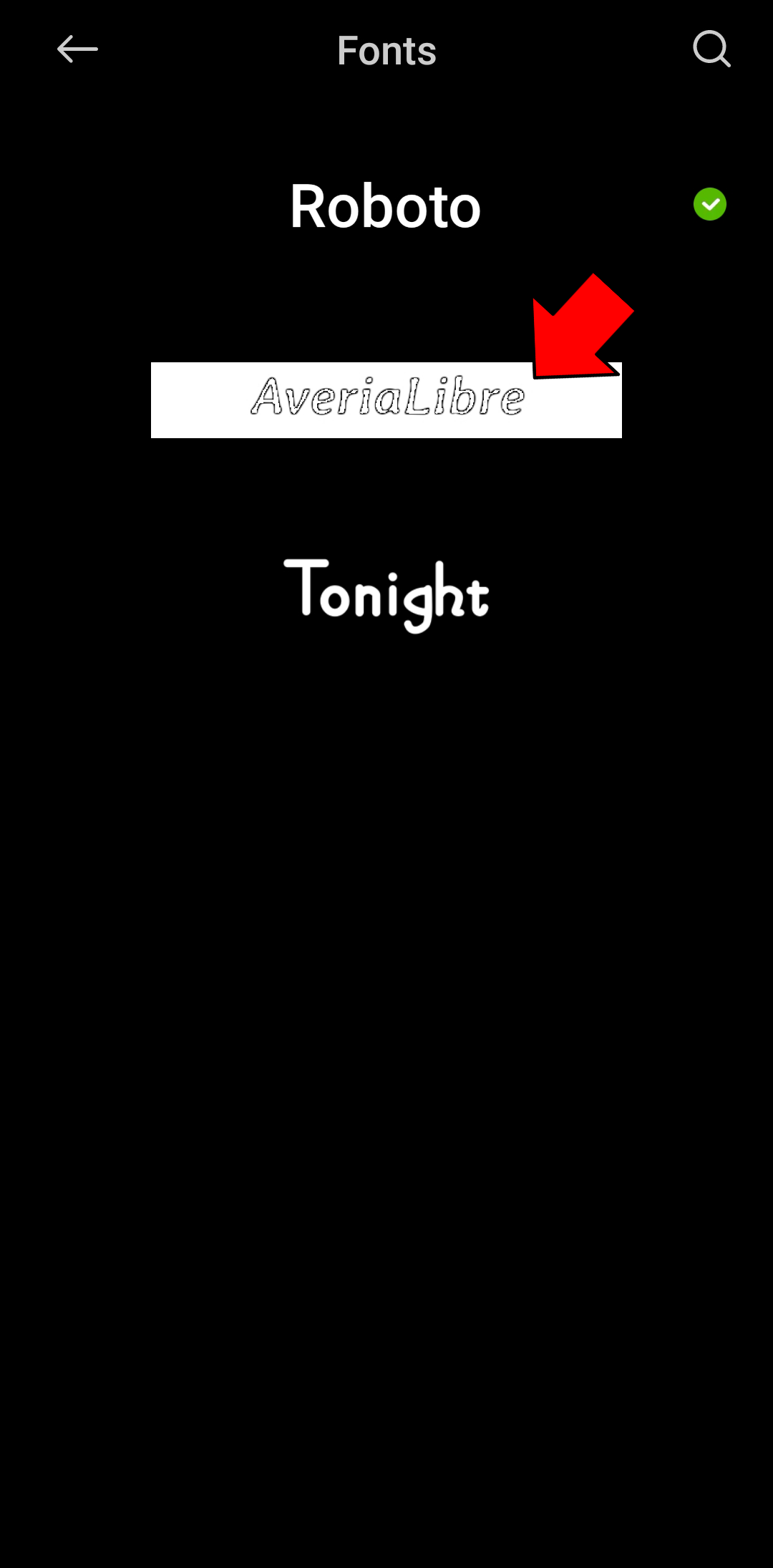 - Tap a font to preview it.