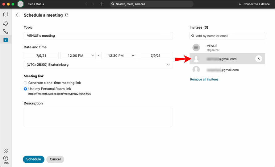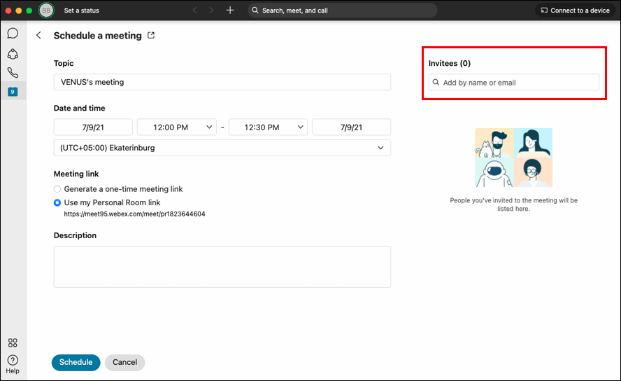 - In the “Invitees” field, add the attendees with their names separated by commas or semicolons.