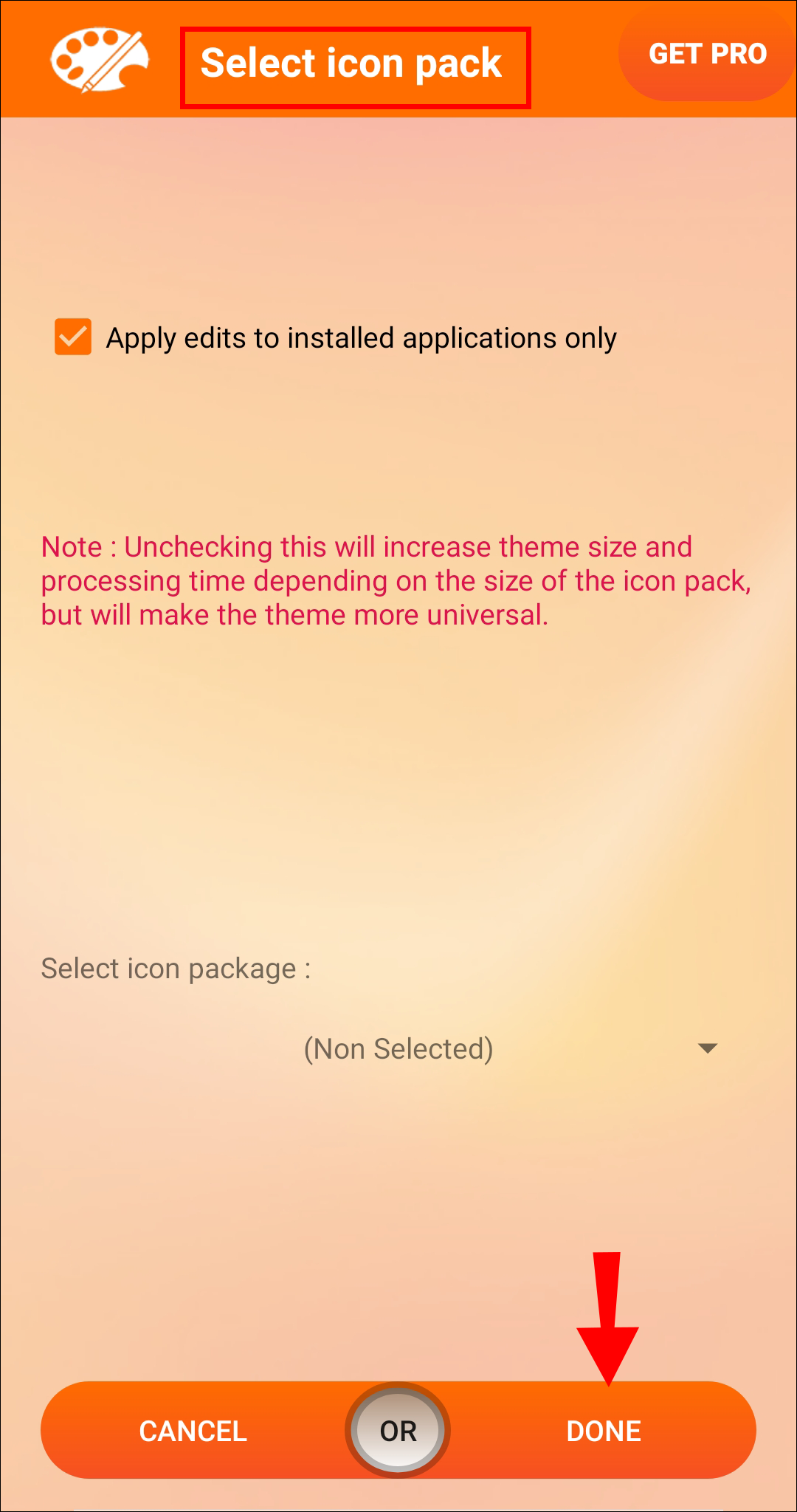 - In the dropdown menu that appears, press “Select icon package” then “Done.”
