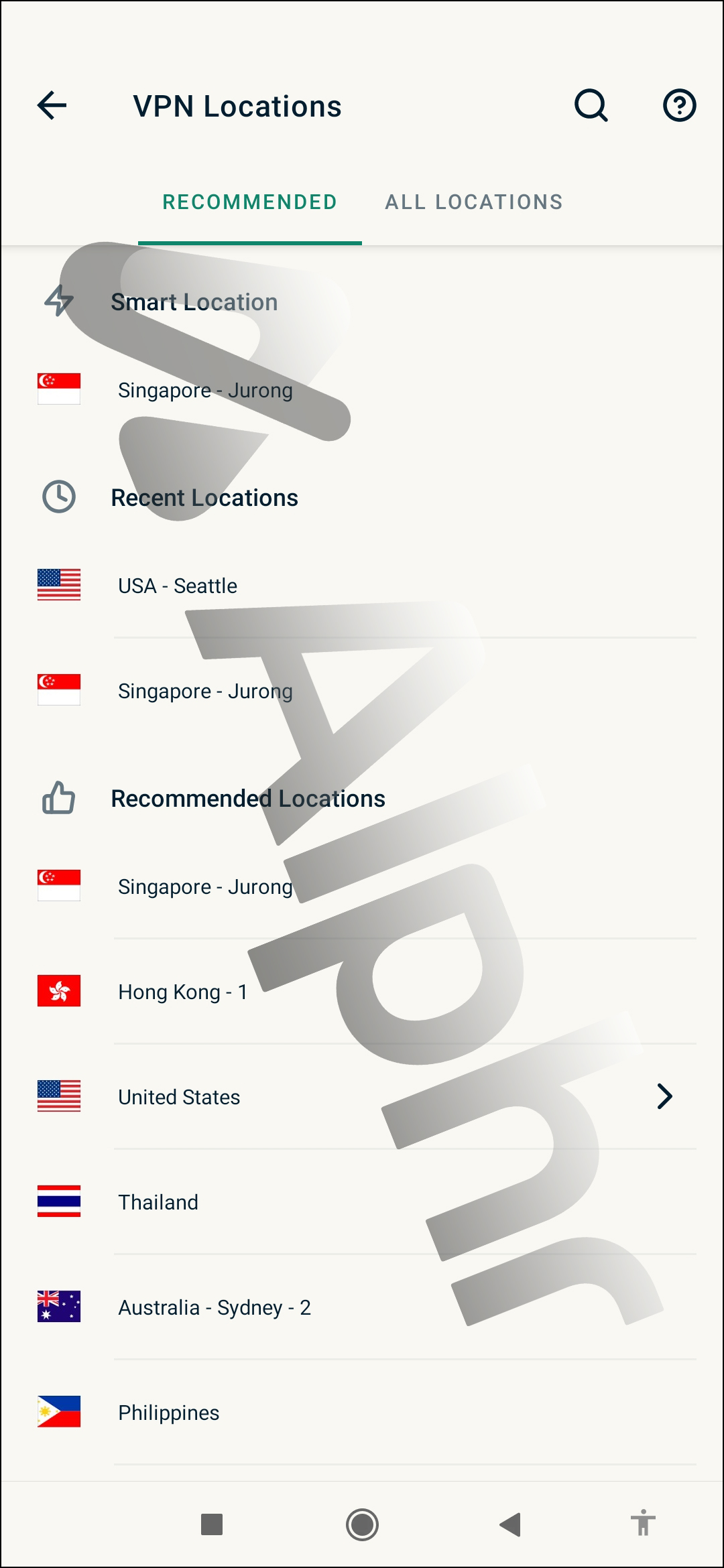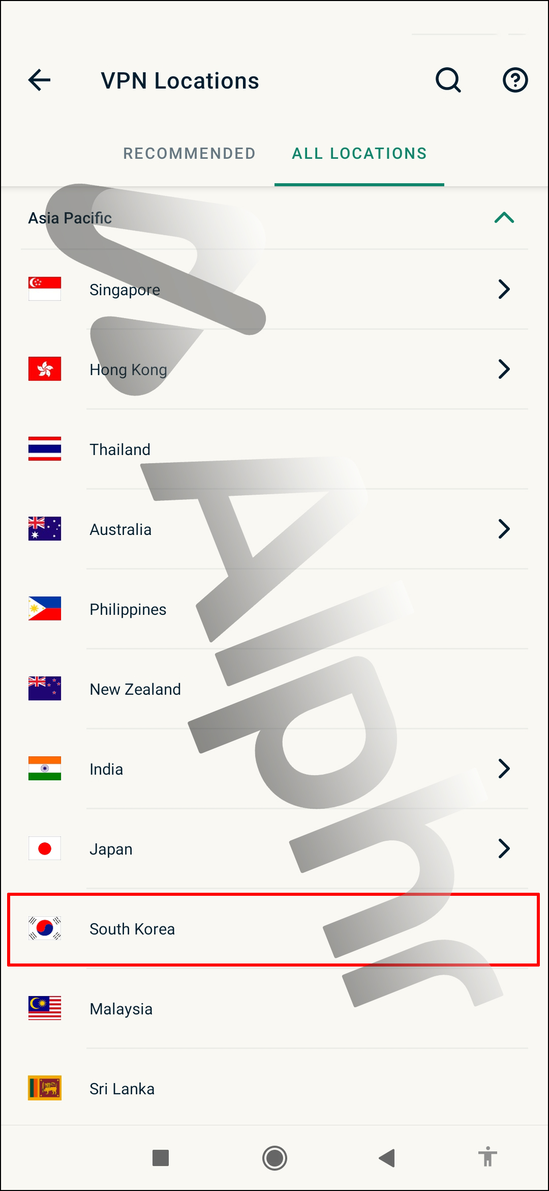 - Select the country you want. For example, to connect to a South Korean location, tap “Asia Pacific,” then “South Korea.” The system will connect you to the optimal connection to ensure the fastest internet speed possible at the moment.