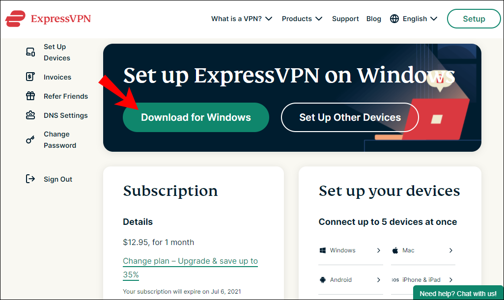 - Go to the ExpressVPN setup page.
