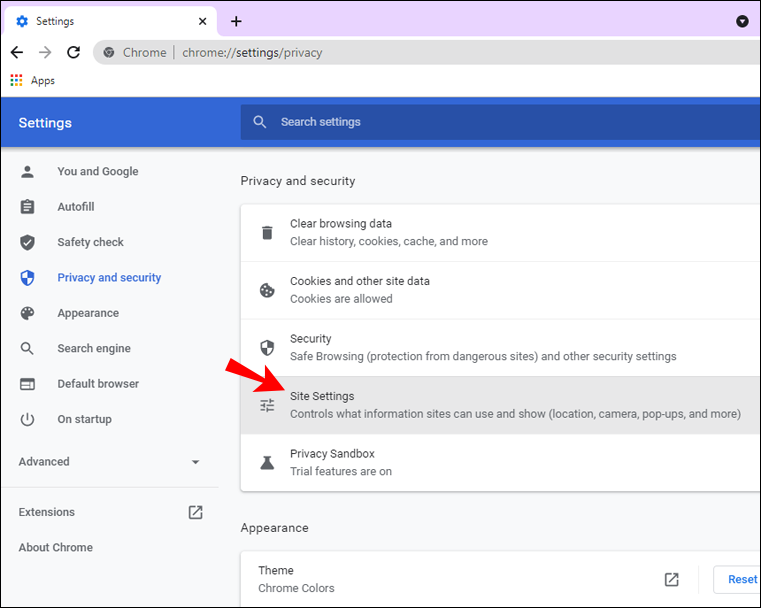 - Select “Site Settings.”