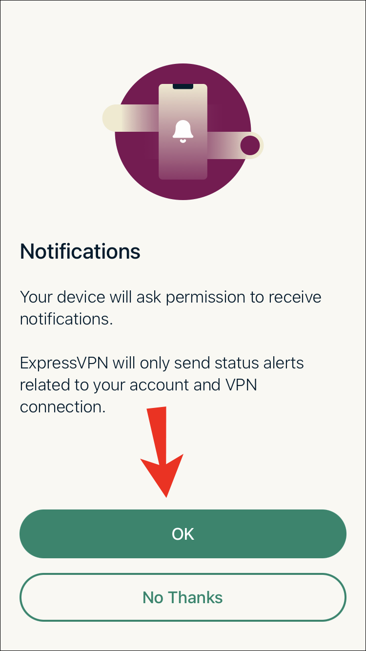 - Grant ExpressVPN permissions by selecting “OK.”
