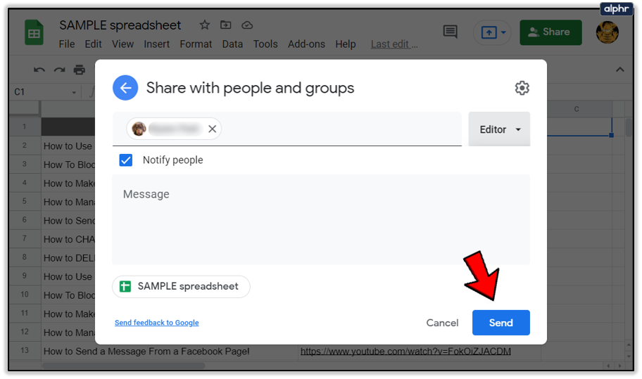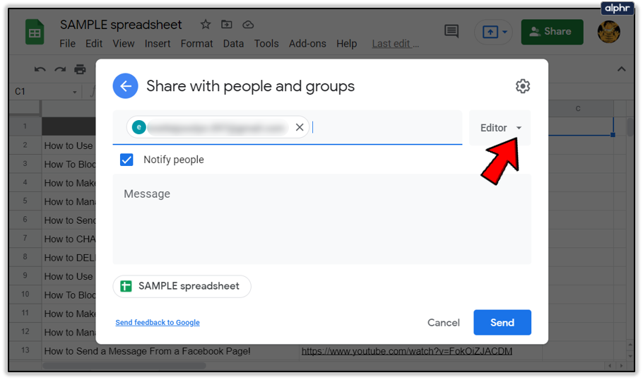 With the editing permission, other users of the Google Sheet can edit the cell content and modify it to their needs. This is always recorded in the revision history. Whenever someone wants to check the previous edits, they’ll be able to do so. Here’s how you can give editing permission: