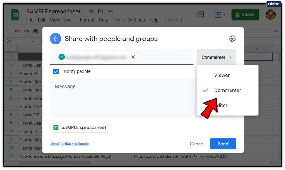 People who can view the Google Sheet you’ve shared with them don’t have the automatic privilege to comment on it. Often, however, you’d like to give users the commenting permission. Thankfully, it’s an easy enough process. To grant a user this function, just do the following: