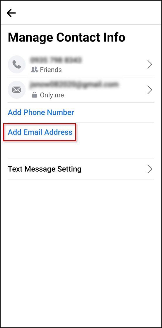 - Once you enter the Manage Contact Info tab, look for the “add email address” option.