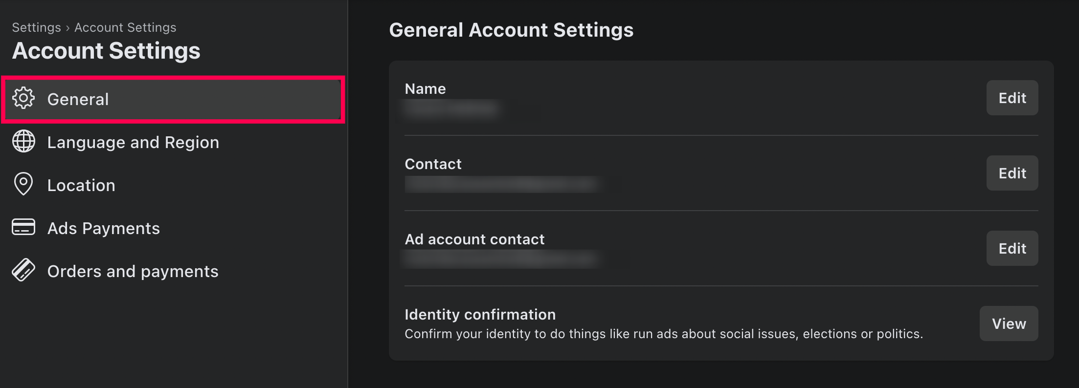 • Navigate to the Contact section in General Account Settings.