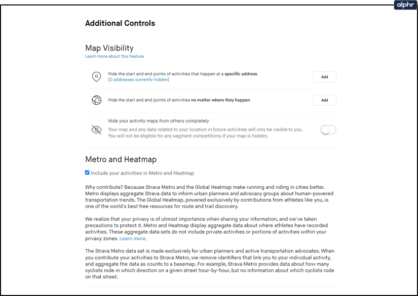 - Scroll down the page to modify Privacy Zones, heatmap participation and other privacy settings.