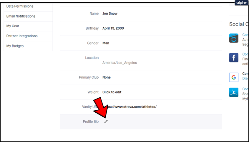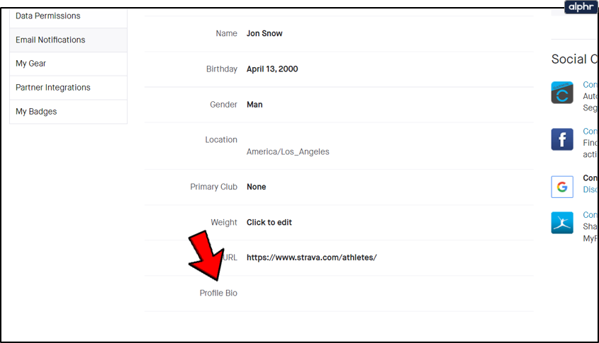 Edit your bio in Strava