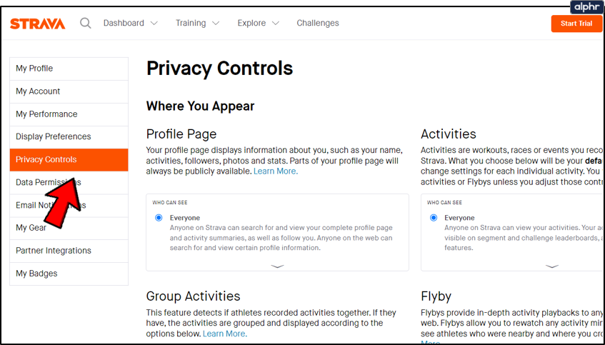Changing profile privacy settings in Strava