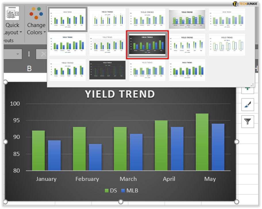 - Click on “Design” tab. The “Chart Styles” option is located on the upper right corner.