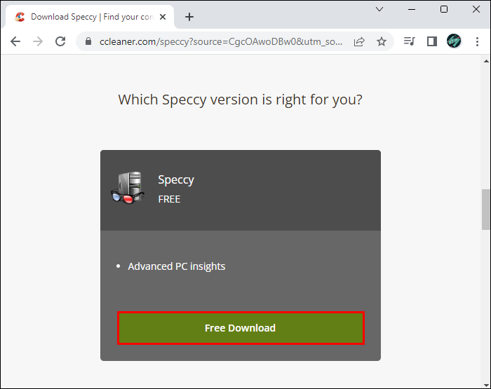 - Launch your browser and download Speccy.