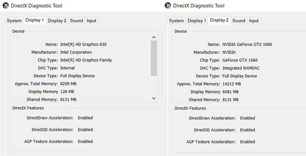- For anyone who has two graphics cards in their system (integrated and deicated), you’ll have two “Display” tabs open in the window.