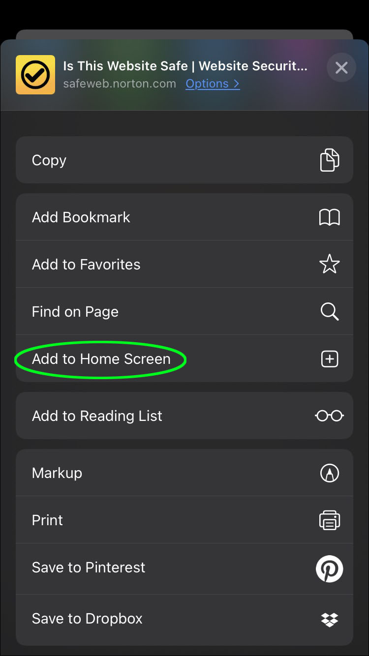 - To add Norton SafeWeb or the other two services to your home screen, go to the Norton SafeWeb page and select Add to Home Screen.