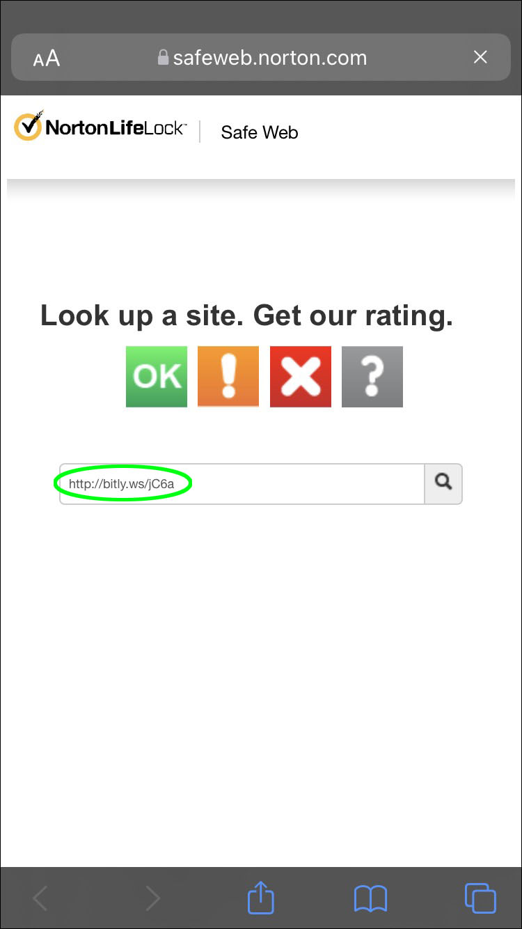 - Go to one of the web services like Norton SafeWeb.