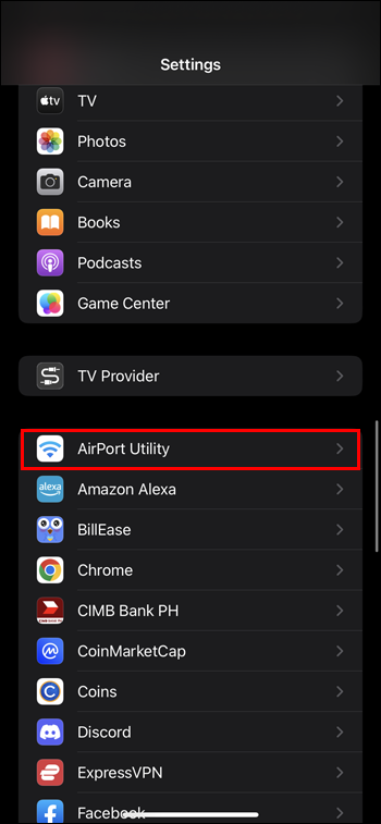 - Open “Settings” and expand the “AirPort Utility” dropdown menu.