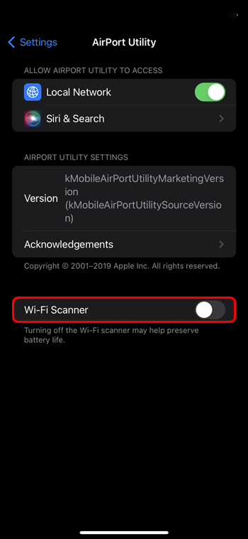 - Launch the AirPort Utility App and tap on “Wi-Fi Scan” in the top-right corner of the screen.