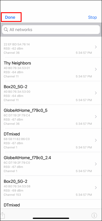 - Tap on “Scan” and select the Wi-Fi network you want to view.
