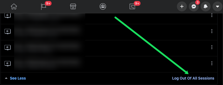 - To log out of all devices at once, scroll down this same page and select Log Out Of All Sessions.