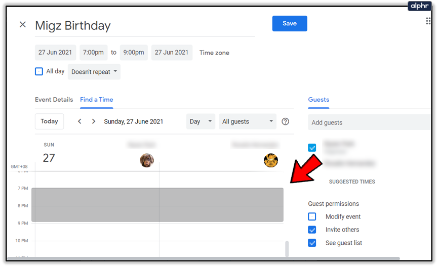 - Make sure All Guests are selected in the box and look for times on the day selected.