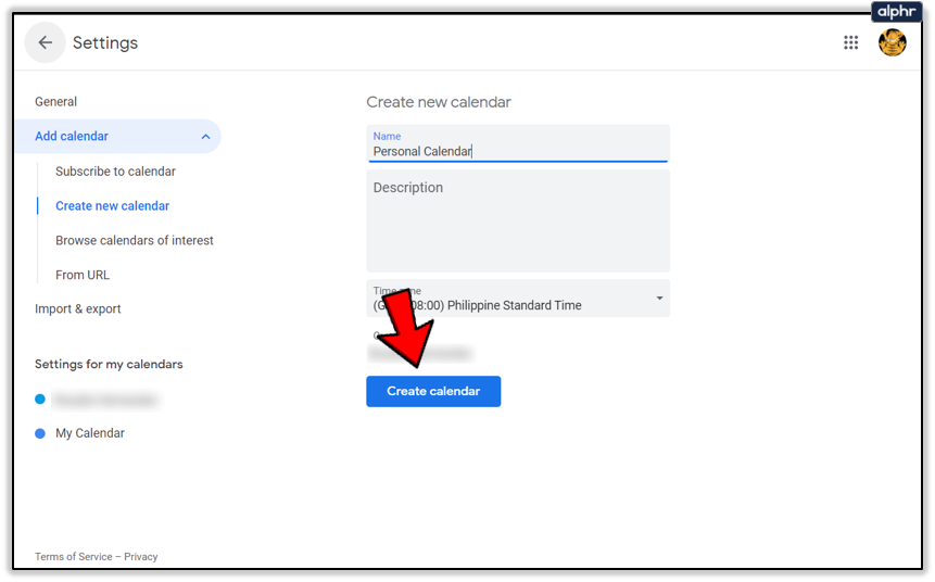 - Select Other calendars then Create new calendar in the left menu to create a new calendar.