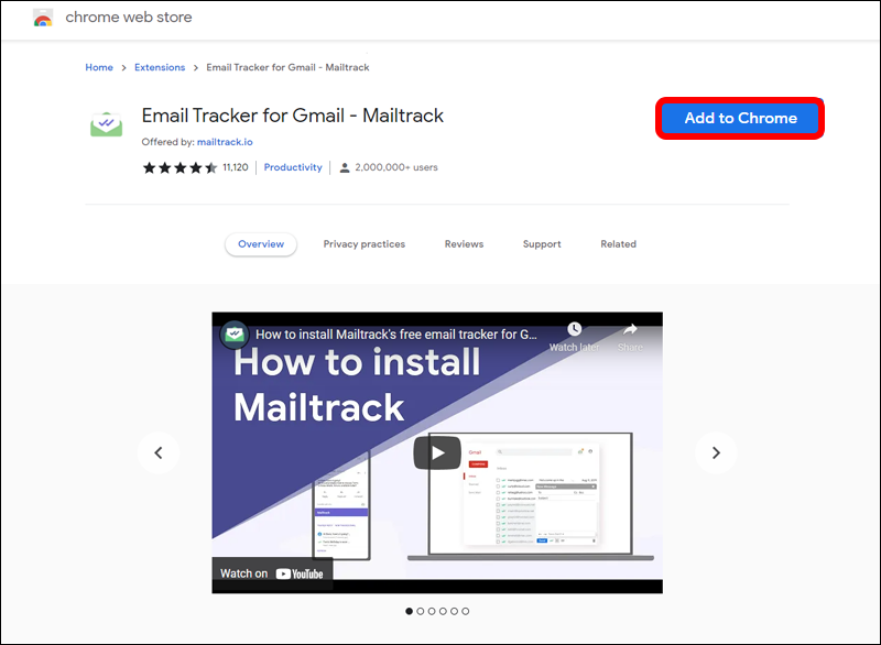 - Download the “Email Track for Gmail – Mailtrack” extension from Google Chrome’s web store.