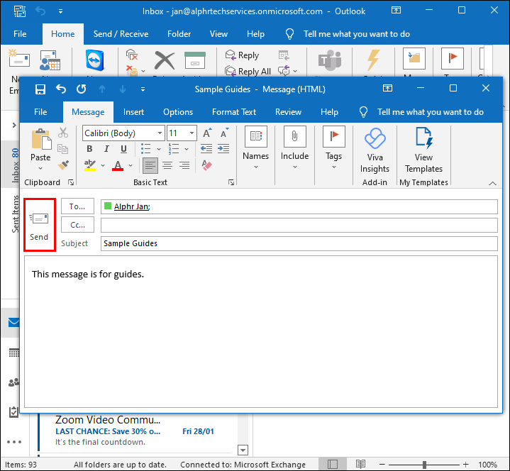 - Head to Sent Items and open the relevant message.