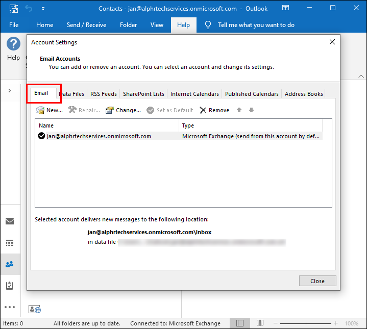 - Open Outlook and click on Tools then Accounts.