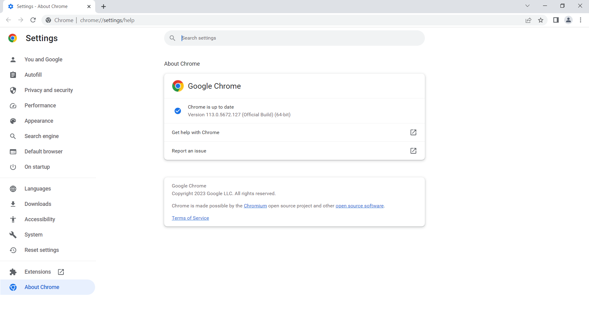 - It will then lead you to a screen showing the version of your Google Chrome.