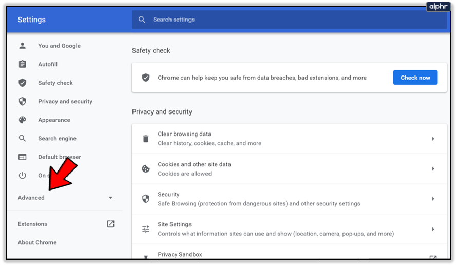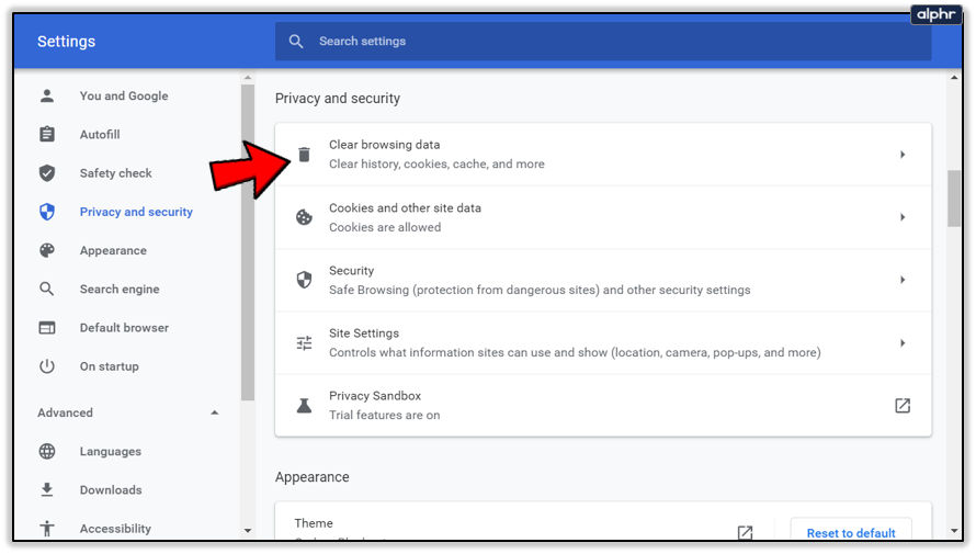 - Scroll to Privacy and security within Settings in Chrome.