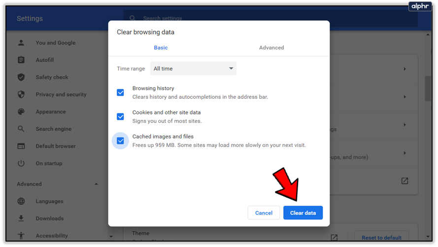 - Select All time and select Clear data.