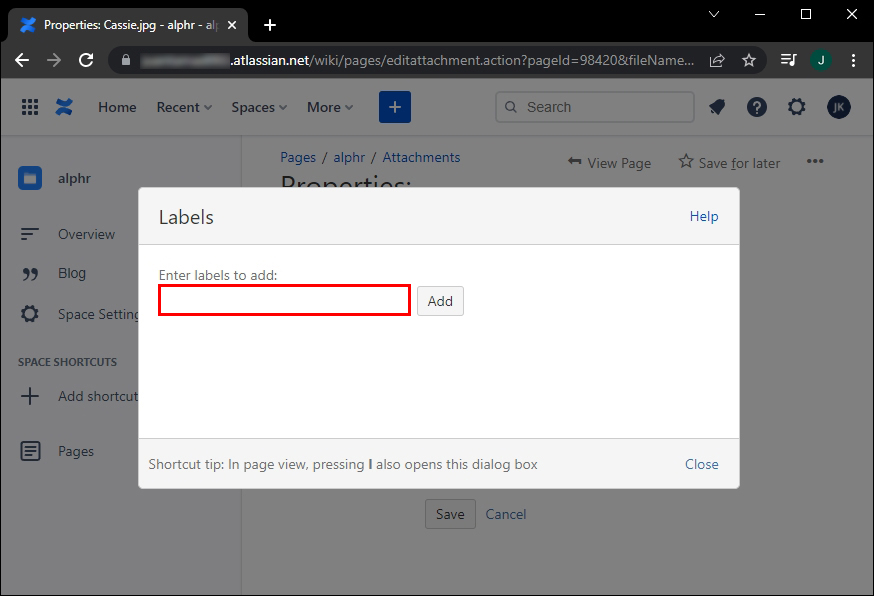 - A pop-up window will appear. Enter the labels and separate them with the Space key.