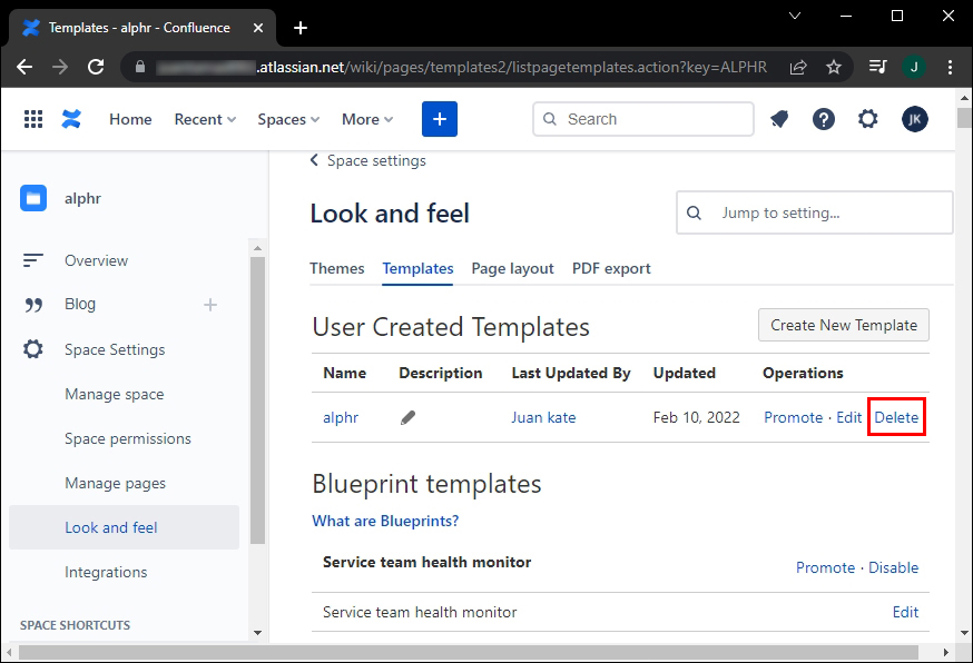 There’s also a way to remove a template from a space you’re administering. Once you delete a template, it will be permanently removed, and you won’t be able to recover it.