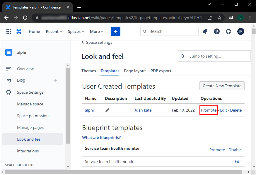 Space administrators can also help team members make pages look more organized and uniform by encouraging them to apply promoted templates. These templates will appear at the top of the search list, making them easier to find and use.
