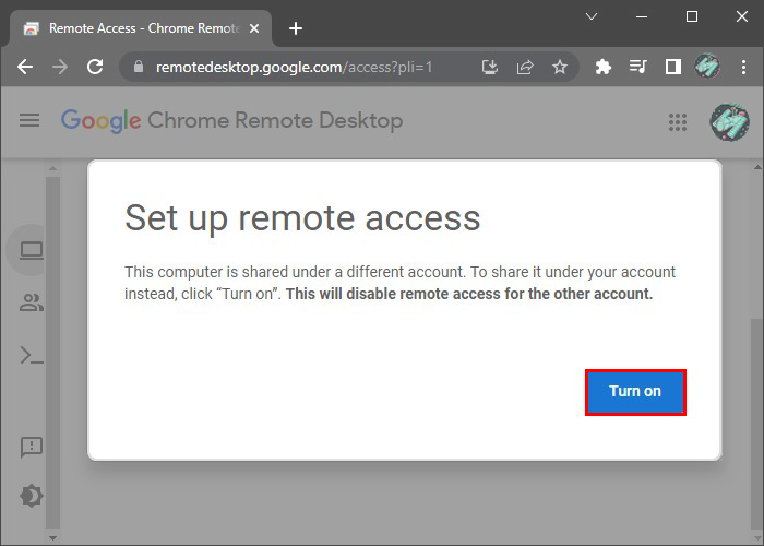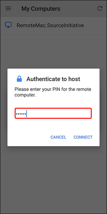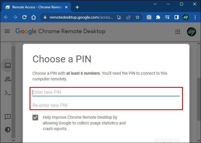 - Follow the on-screen steps to permit Google Remote Access to project the computer screen on a mobile device and type a PIN code to authorize remote access.
