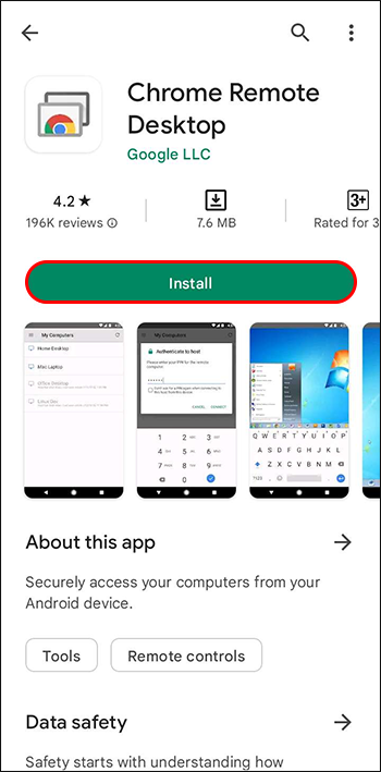 - Install the Chrome Remote Desktop app on your phone and log in using your Google account.